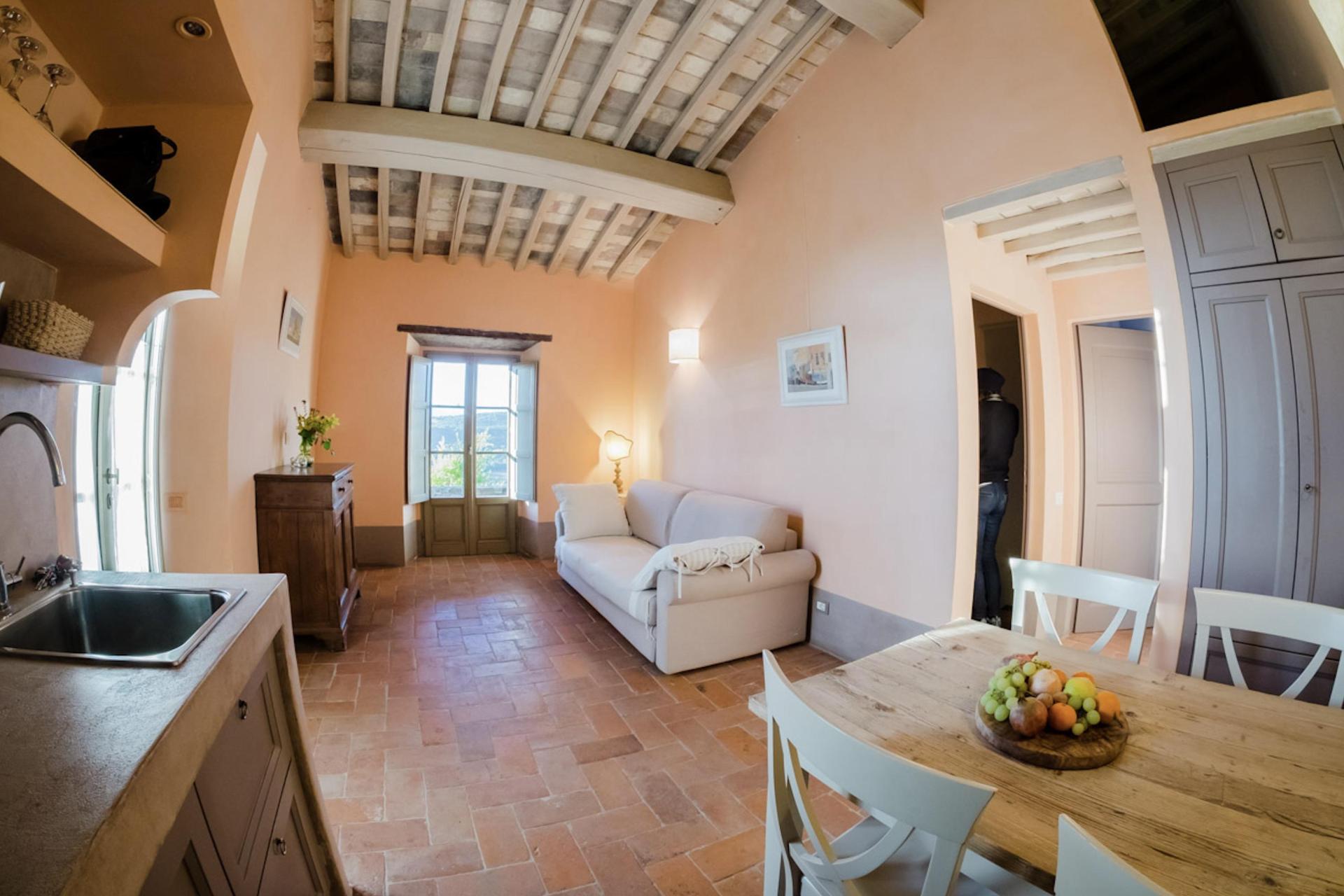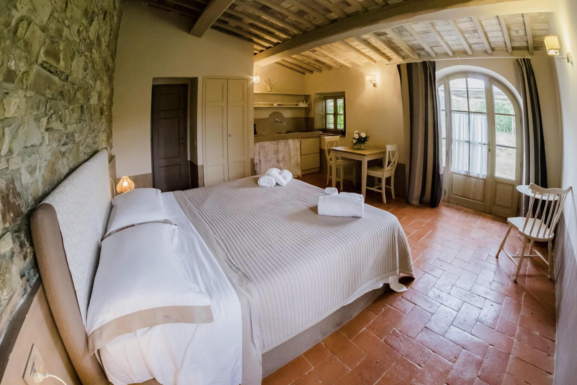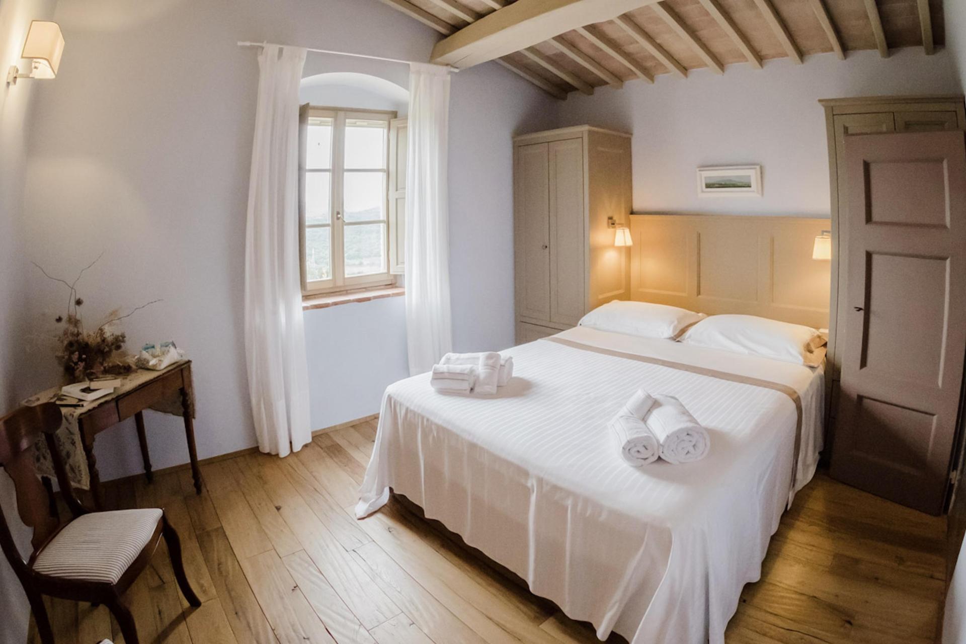 Der Agriturismo bietet 2 stimmungsvolle Zimmer, 2 Ferienwohnungen und 2 freistehende Cottages, alle mit einem eigenen Außenbereich mit Tisch, Stühlen und Sonnenschirm (mehr oder weniger privat, je nach Kategorie). Der Einrichtungsstil ist kompakt, aber warm und einladend – mit authentischem toskanischem Flair und modernem Komfort. Eine Klimaanlage gibt es nicht, aber Ventilatoren stehen zur Verfügung.