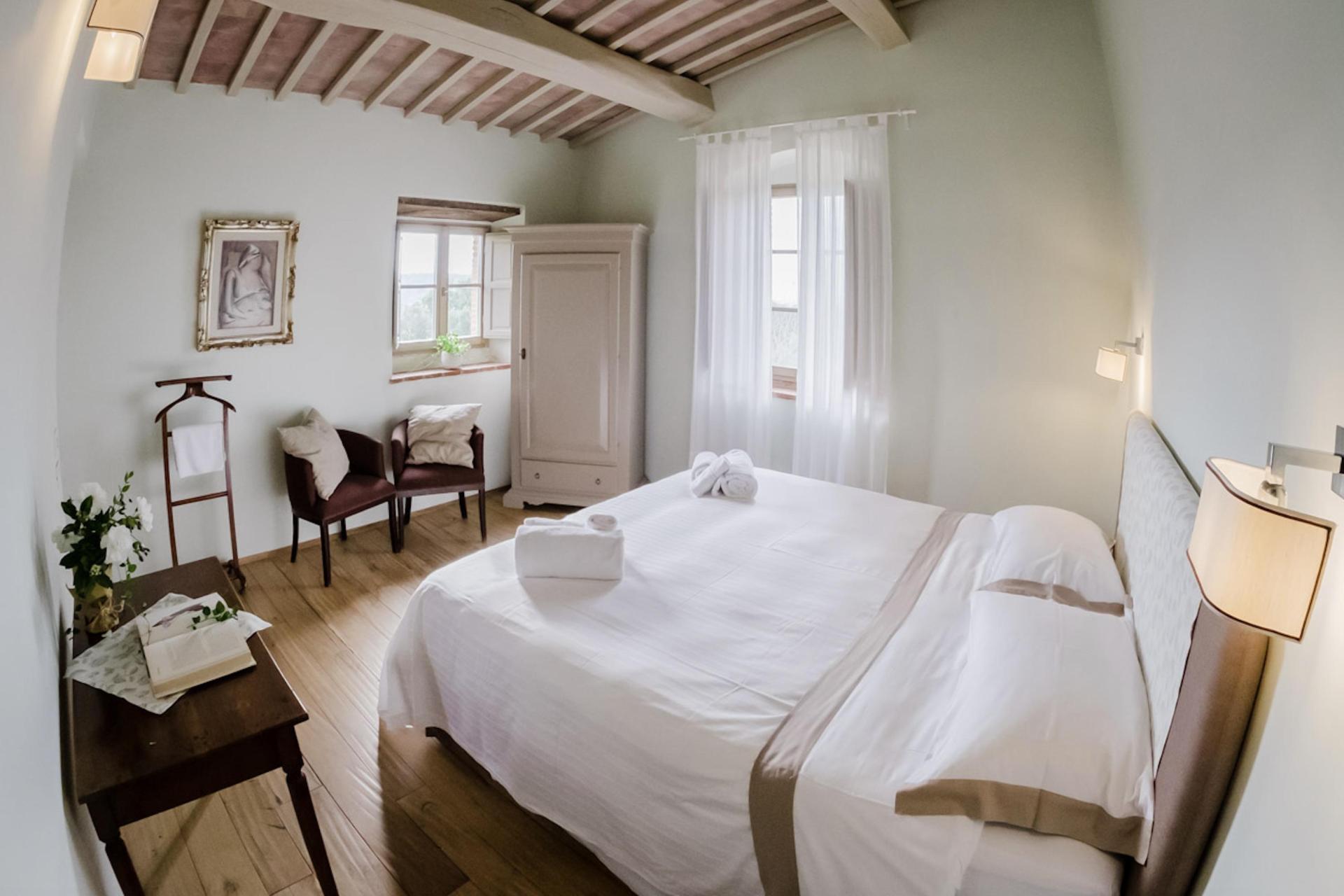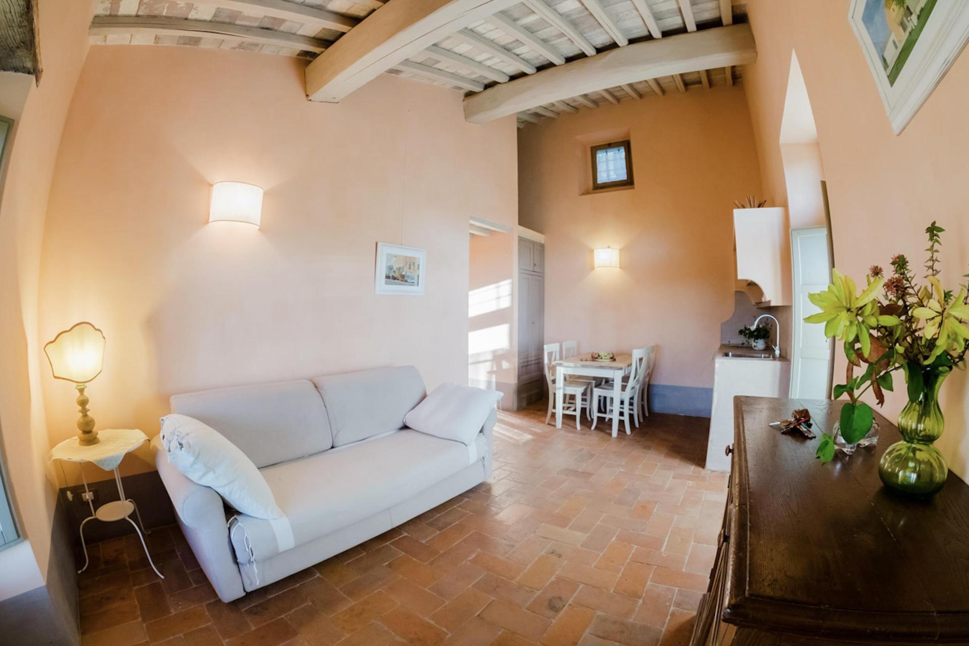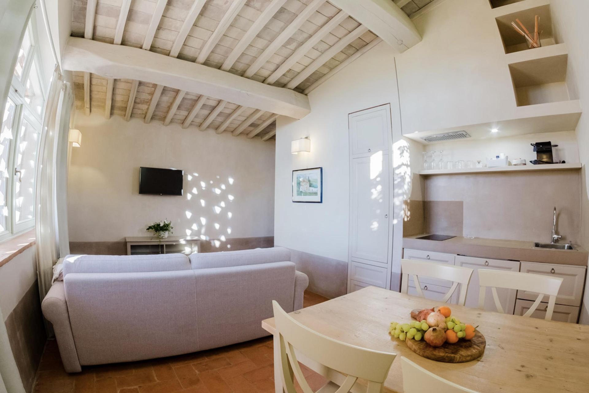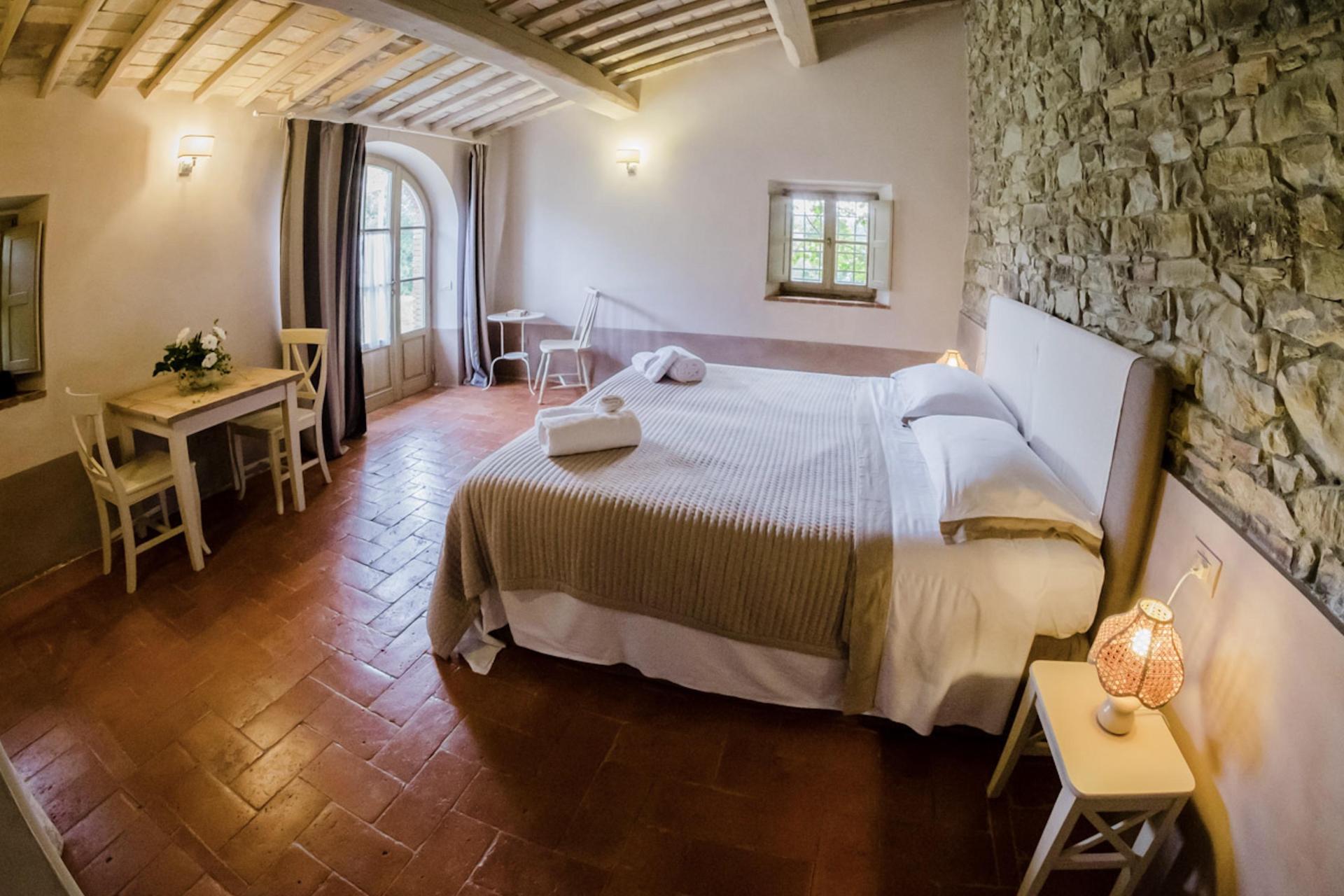 Der Agriturismo bietet 2 stimmungsvolle Zimmer, 2 Ferienwohnungen und 2 freistehende Cottages, alle mit einem eigenen Außenbereich mit Tisch, Stühlen und Sonnenschirm (mehr oder weniger privat, je nach Kategorie). Der Einrichtungsstil ist kompakt, aber warm und einladend – mit authentischem toskanischem Flair und modernem Komfort. Eine Klimaanlage gibt es nicht, aber Ventilatoren stehen zur Verfügung.