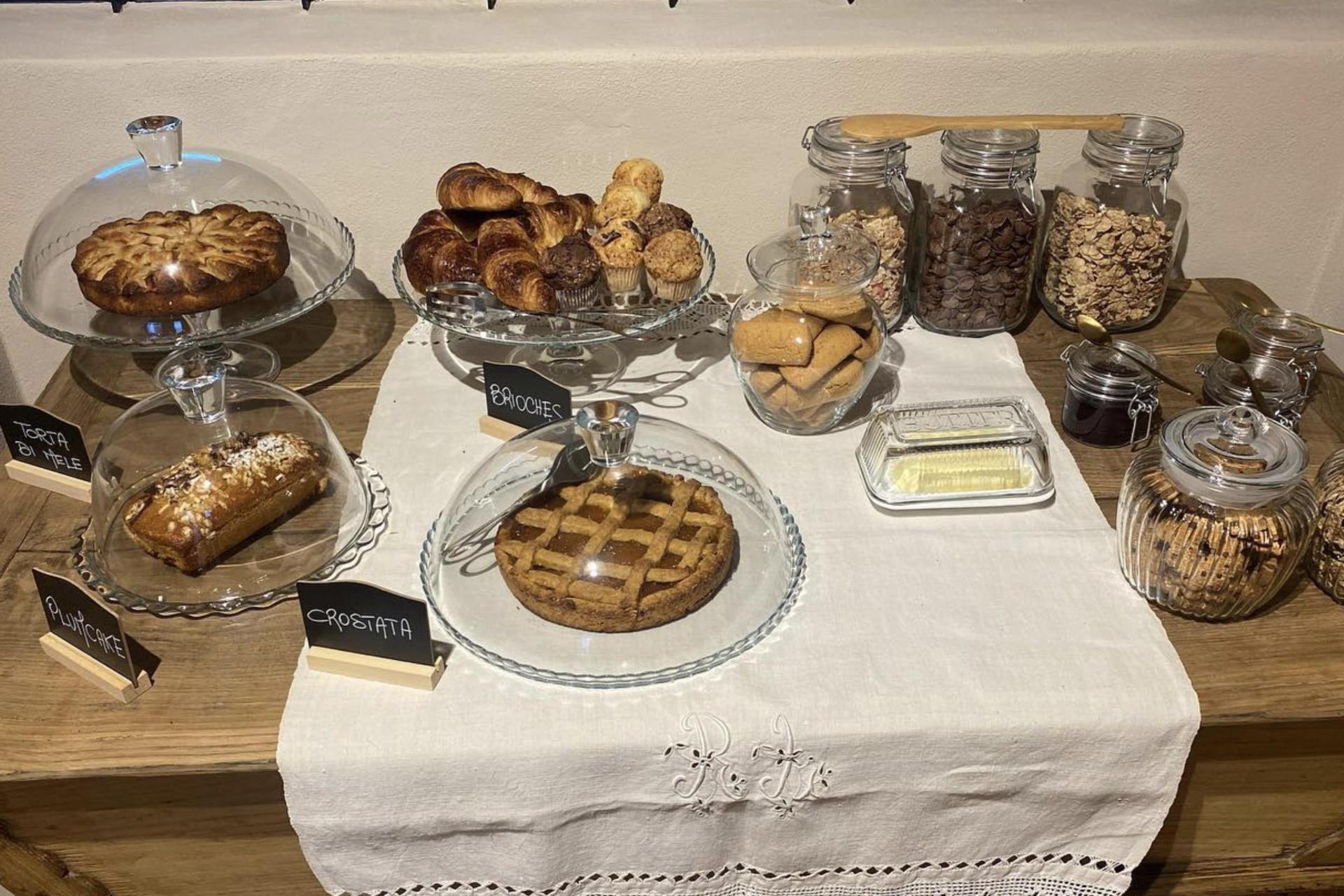 Der Frühstücksraum befindet sich im ehemaligen Stall, in dem die originalen Futtertröge noch sichtbar sind. Auf Anfrage und gegen Aufpreis werden hier auch Weinverkostungen und Showcookings mit traditionellen Gerichten aus der Langhe organisiert.