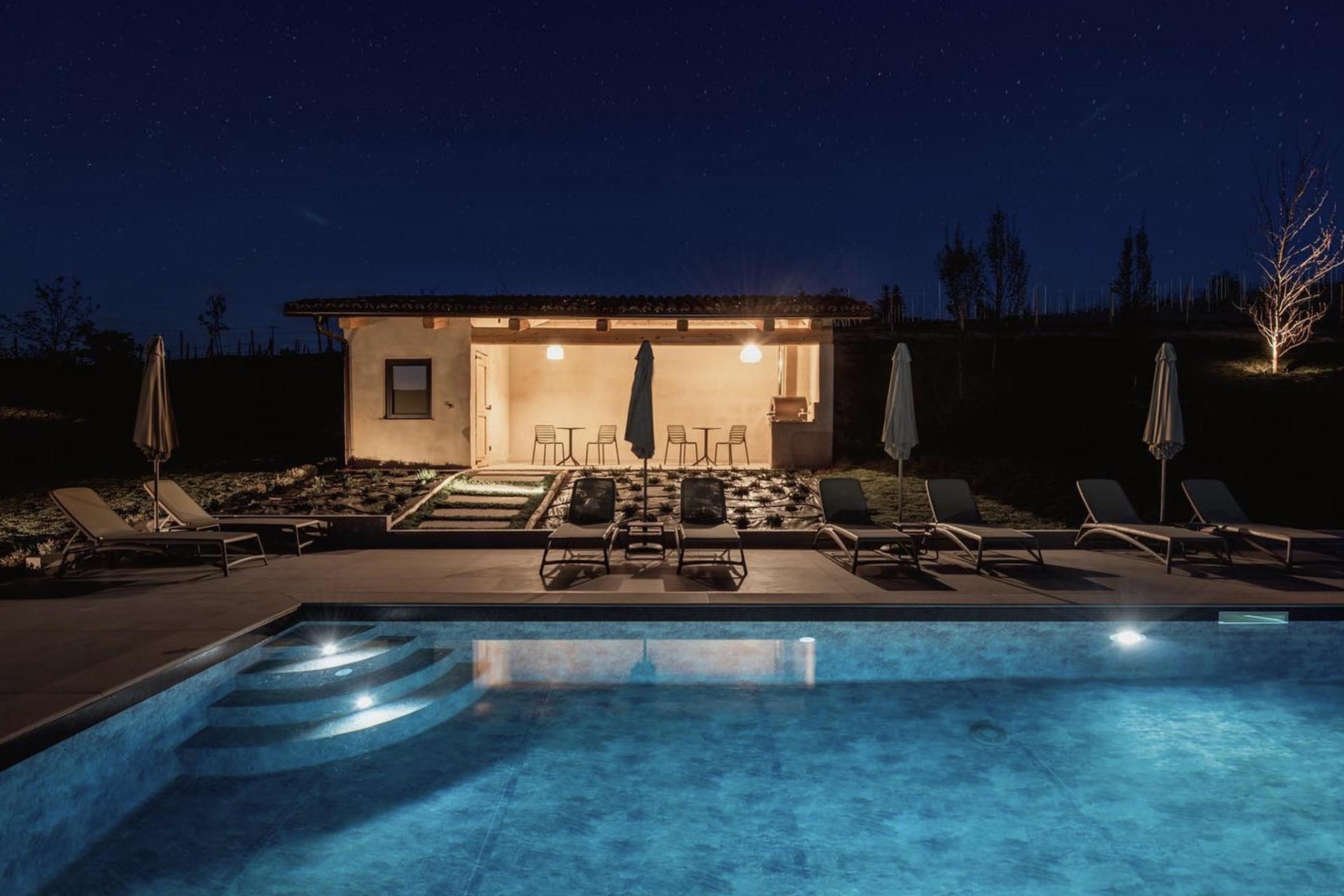 Dieser Agriturismo vereint Ruhe, Natur und Komfort. Der Pool liegt herrlich zwischen den Weinbergen und verfügt über eine großzügige Liegewiese mit weitem Ausblick. Zudem gibt es einen Whirlpool, in dem man wunderbar entspannen kann. Während der Hochsaison (von Juni bis September) ist am Pool eine Bar geöffnet, an der leichte kalte Mittagsgerichte – wie Salate, Caprese, Melone mit Schinken und Sandwiches – sowie Getränke und Aperitivi angeboten werden.