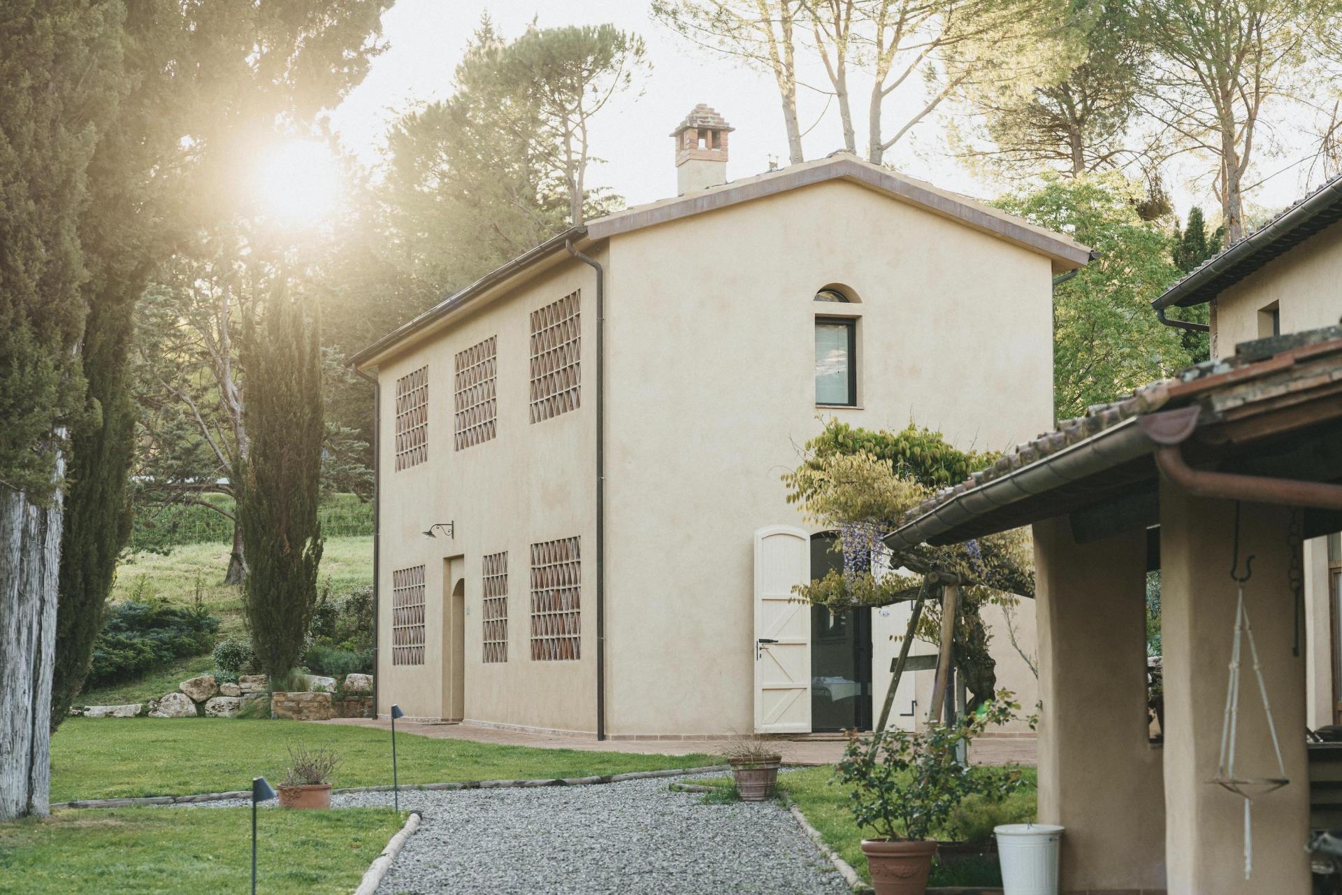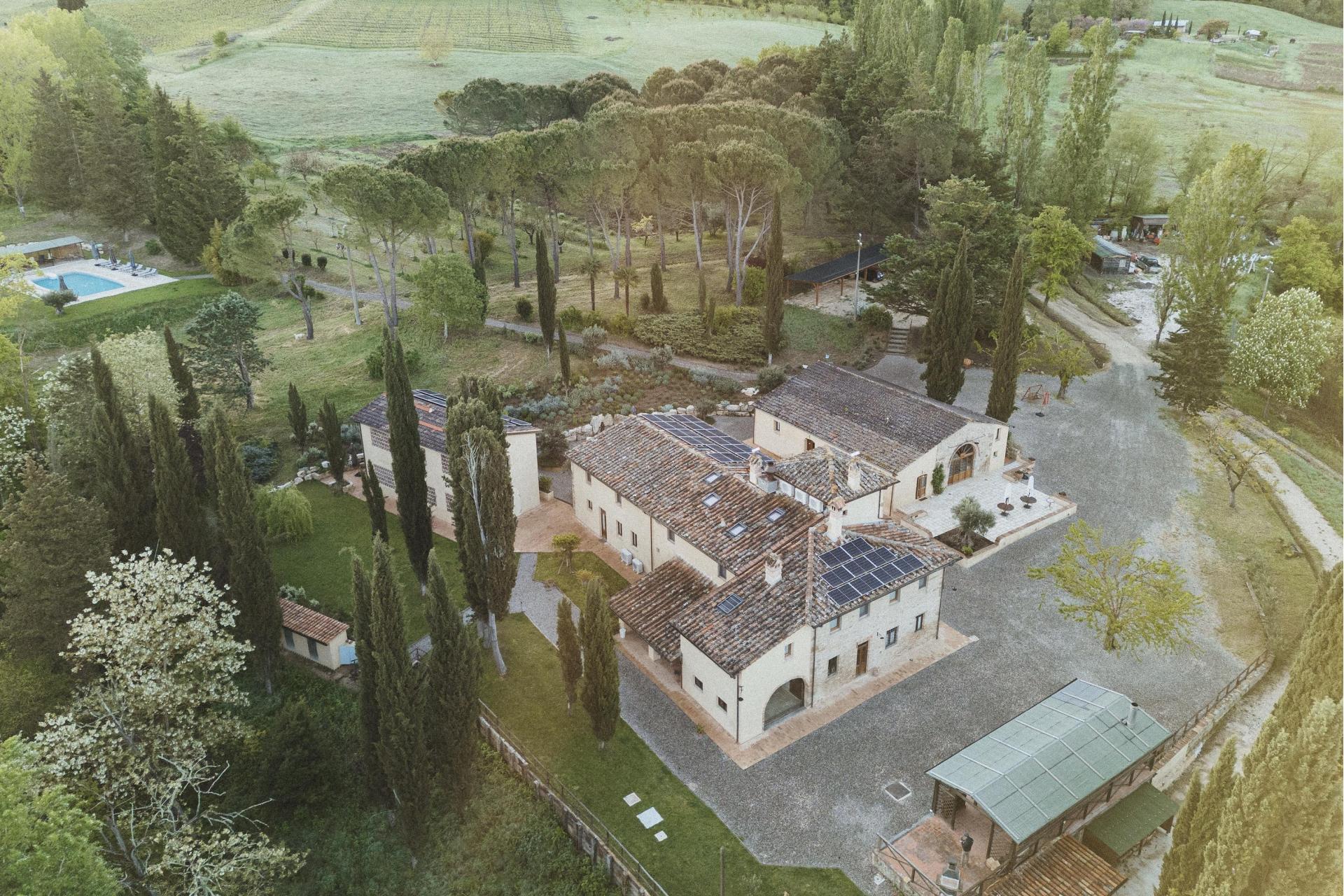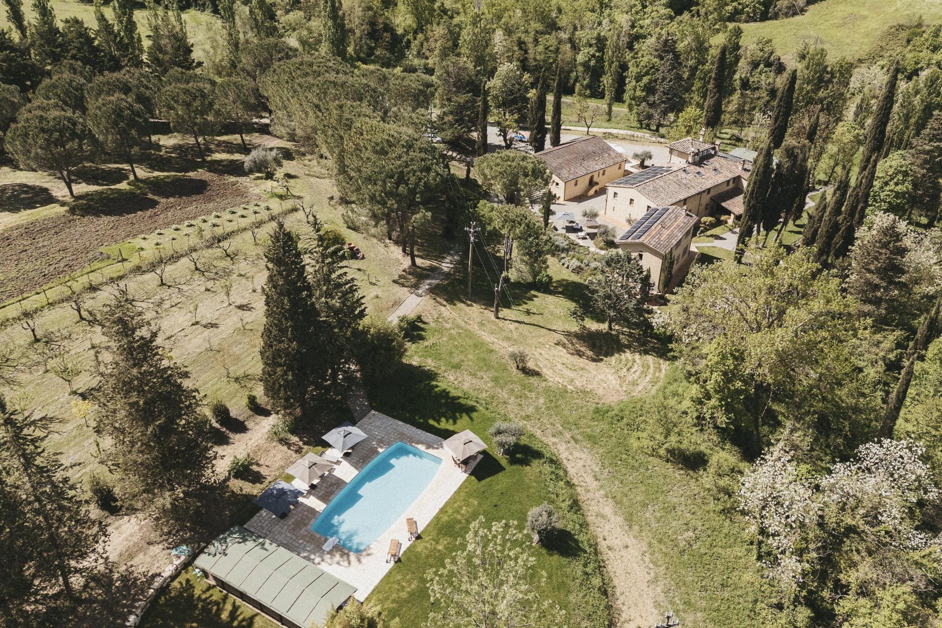 Dieses Agriturismo liegt in unberührter Natur, zentral in der Toskana und dennoch deutlich abseits der bekannten Wege. Die letzten 1,8 Kilometer führen über eine unbefestigte Straße, die sich durch Olivenhaine und Zypressen schlängelt. Diese Anfahrt gehört zur Erfahrung dazu: Das Tempo verlangsamt sich, die Umgebung wird ruhiger und der Alltag rückt in den Hintergrund. Wildtiere sind hier Teil des täglichen Lebens – es ist keine Seltenheit, unterwegs Rehe, Füchse oder Eichhörnchen zu sehen.