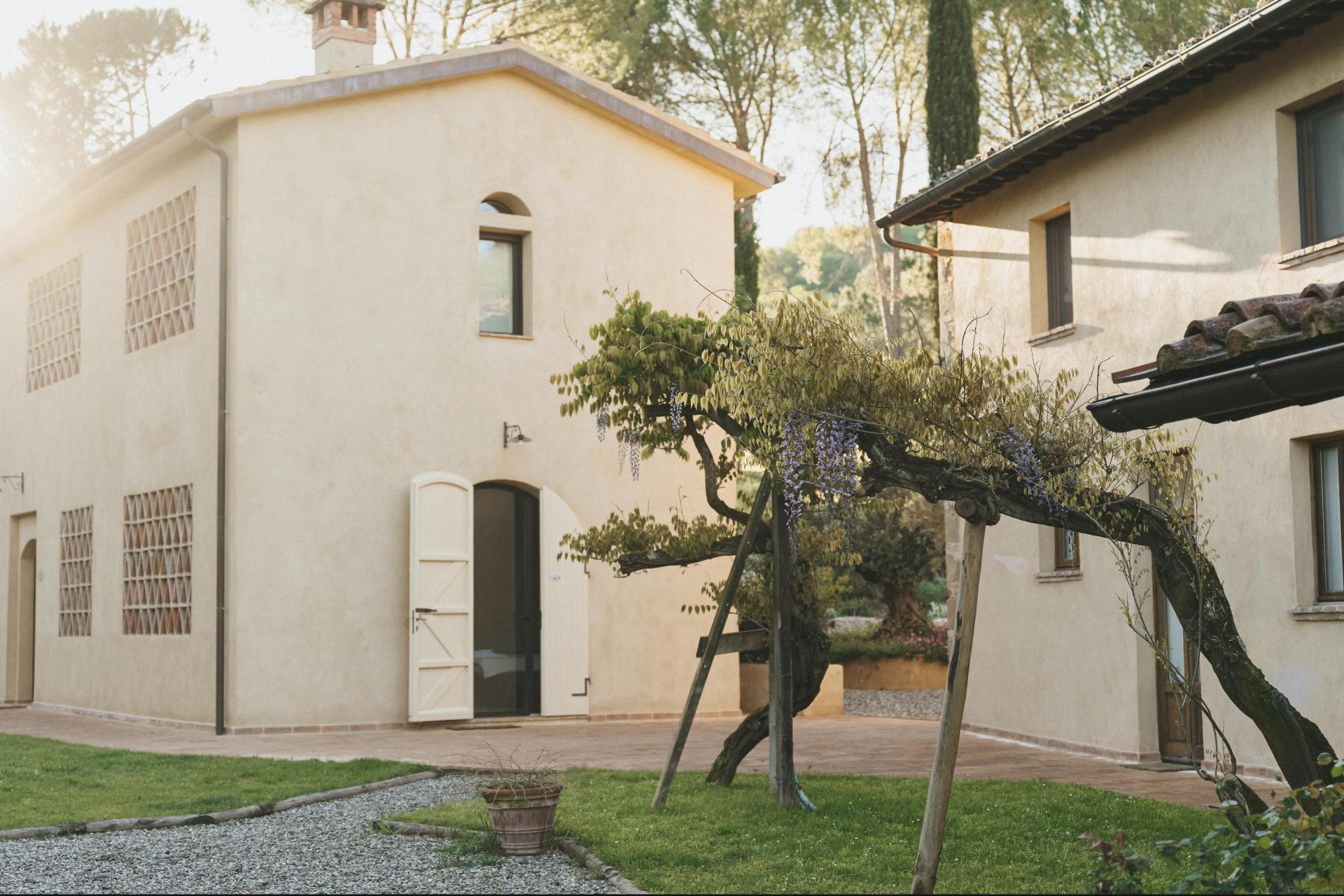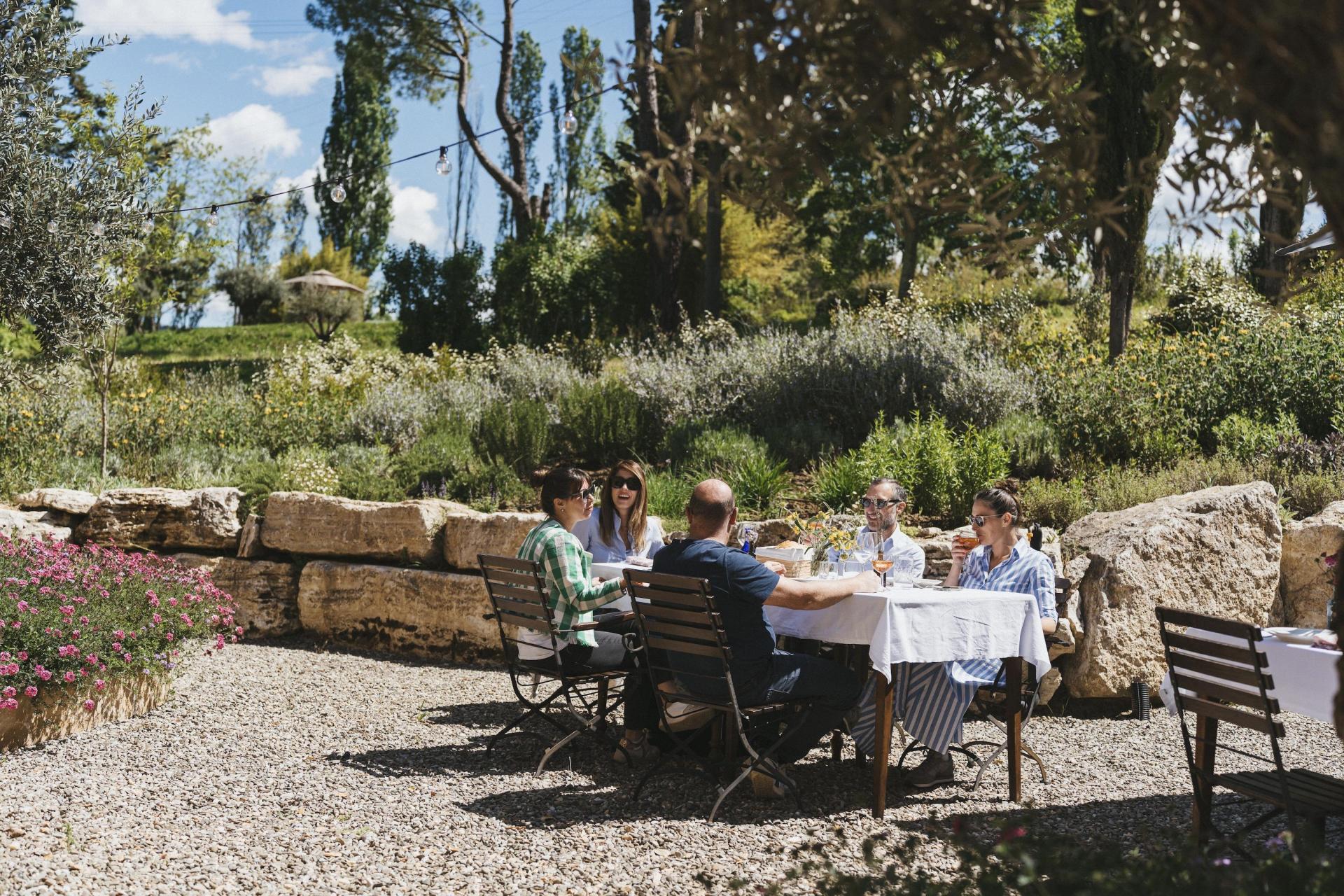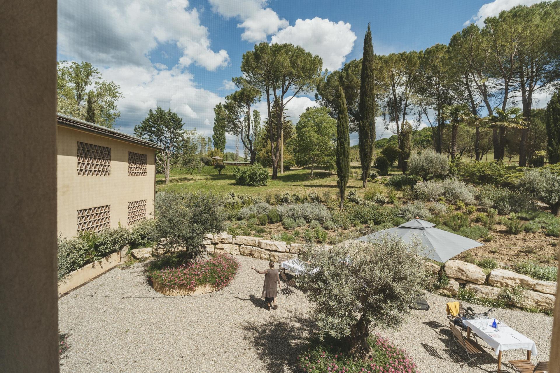 Die Gebäude gruppieren sich um einen offenen Innenhof, der das Herz des Borgos bildet und sich ganz selbstverständlich als Treffpunkt anbietet. Von hier aus erstreckt sich der Garten mit verschiedenen ruhigen Ecken und Sitzgelegenheiten, in denen jeder seinen eigenen Platz finden kann.