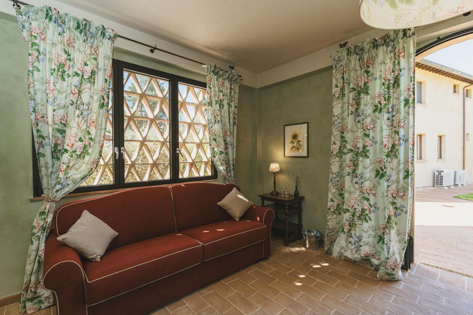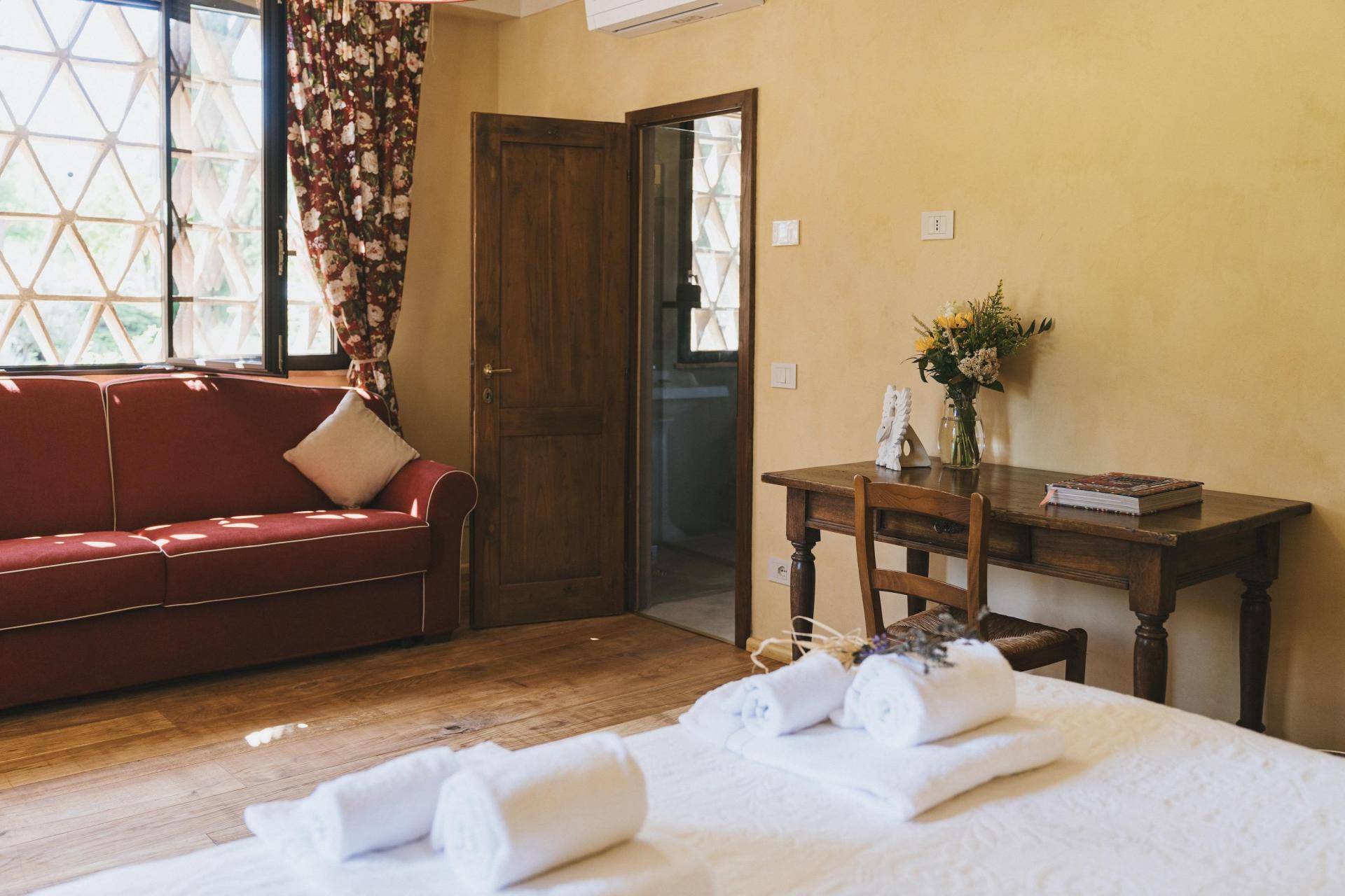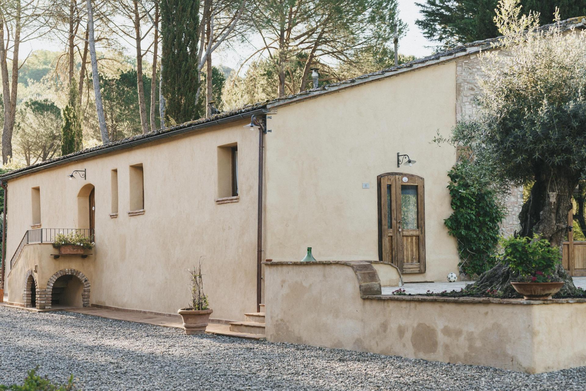 Das Agriturismo verfügt über zwölf Zimmer, verteilt auf mehrere Gebäude innerhalb des Borgos. Es handelt sich nicht um standardisierte Zimmer – jedes hat seinen eigenen Grundriss und Charakter. Natürliche Materialien und eine ruhige, zurückhaltende Einrichtung unterstreichen überall die besondere Atmosphäre des Ortes.