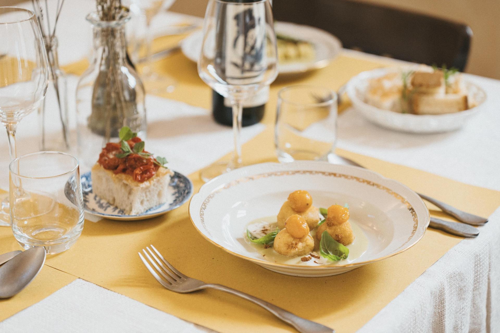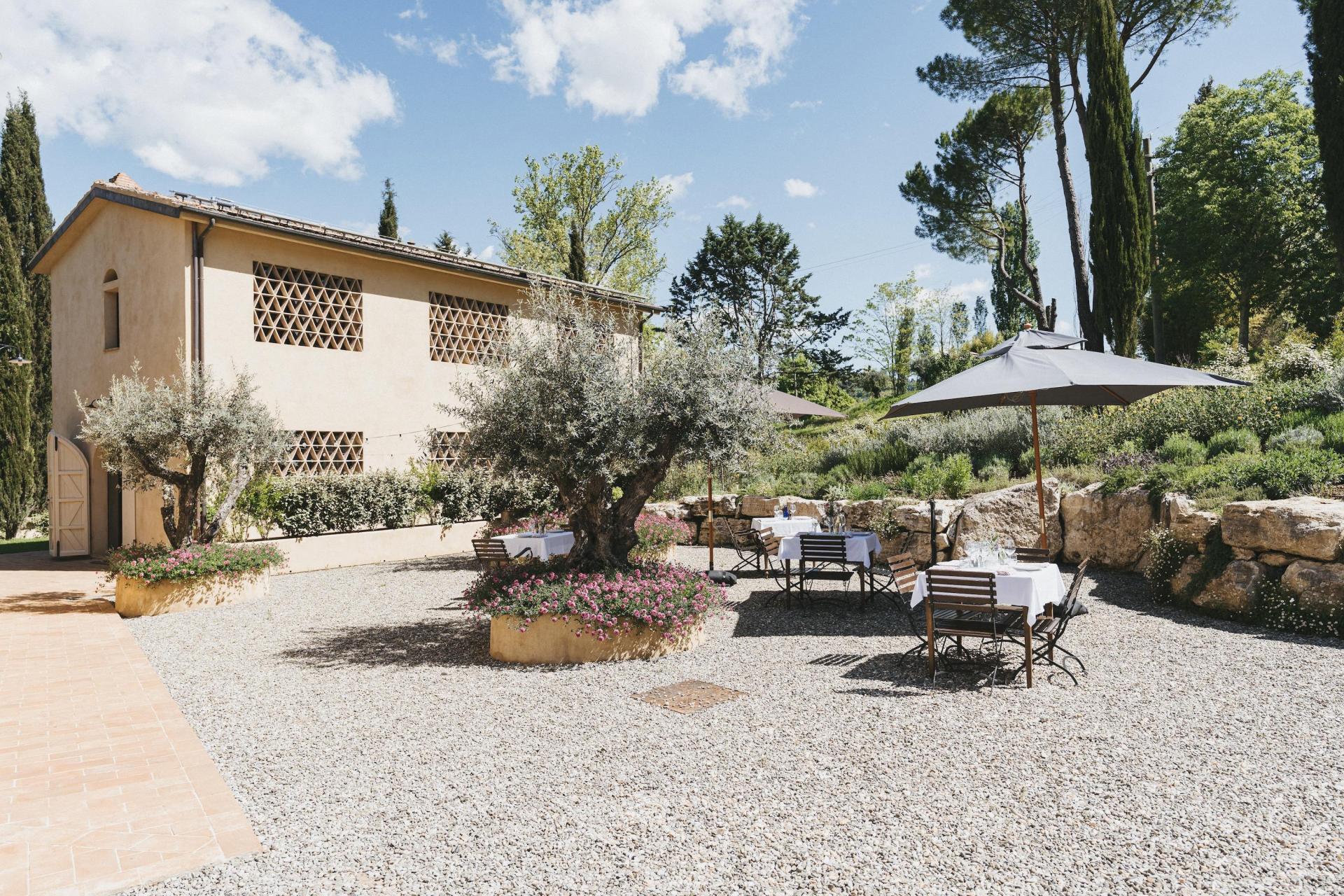 Das Restaurant ist ein fester Bestandteil des Aufenthalts. Nach einem Tag im Chianti oder einem Ausflug nach Florenz oder Siena muss man nicht noch einmal ins Auto steigen. Stattdessen bleibt man einfach vor Ort und genießt ein gutes Abendessen, vielleicht eingeleitet durch einen Aperitivo bei Sonnenuntergang mit einem Glas Wein aus der Region. Gekocht wird mit saisonalen Zutaten aus dem eigenen Gemüsegarten und von kleinen Produzenten aus der Umgebung. Die Küche ist klar toskanisch geprägt, mit Fokus auf Geschmack und Einfachheit und gelegentlich einer zeitgemäßen Note. Vegetarische, vegane und glutenfreie Optionen sind auf Anfrage möglich (bitte vorab Bescheid geben). Die Weinkarte besteht überwiegend aus Weinen lokaler Erzeuger, viele davon biologisch oder biodynamisch.